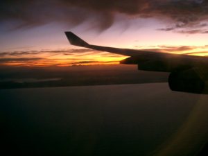 飛行機が地面に近づく際の明け方の朝の光が旅の始まりの吉兆にいまでは思えます。