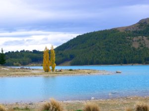 途中で立ち寄った「テカポ湖」の「善き羊飼いの教会」から眺めた湖は、今までみたことのない、なんと例えて良いかわからない、エメラルドグリーンともいえない、特徴的な湖の色でした。これが「レイクブルー」という色でしょうか。